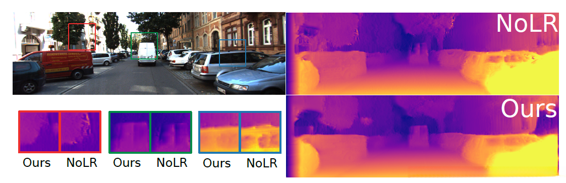 作者的方法可以只用左视图同时输出左视图和右视图的视差图,通过迫使它们俩之间达成一致来得到更好的深度图。