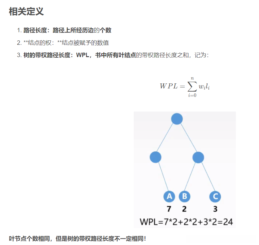 哈夫曼树结构及带权路径长度