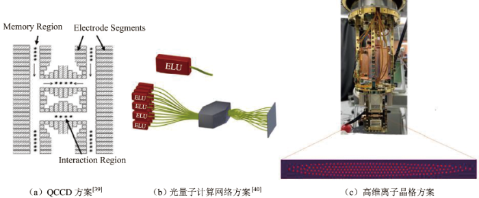 只有具备足够大的希尔伯特空间才能存储和处理足够多的信息。如图1所示,离子阱系统中实现量子比特数量扩展主要有以下三种方案。