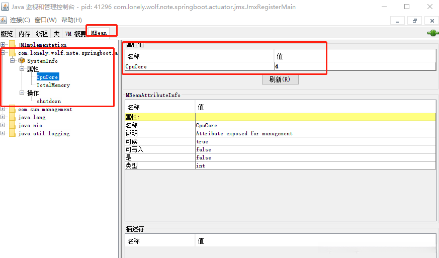 mBeanServer.registerMBean(SystemInfo,objectName);//注册