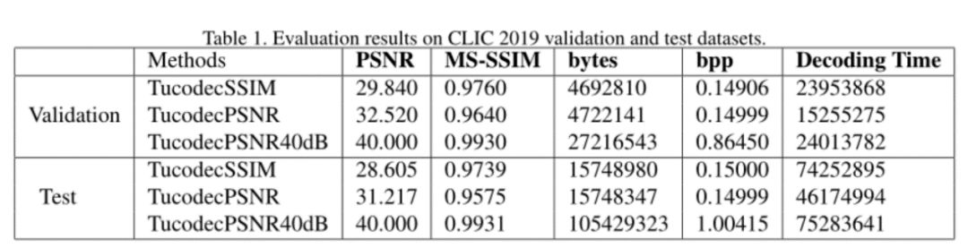 得益于优良的网络结构和算法设计,在CVPR 2019 CLIC图像压缩挑战赛中,我们所提出的算法TucodecSSIM夺得了MS-SSIM和MOS两项指标的冠军,算法TucodecPSNR夺得了PSNR指标的冠军,算法TucodecPSNR40dB则夺得高码点图像压缩Transparent Track的冠军。