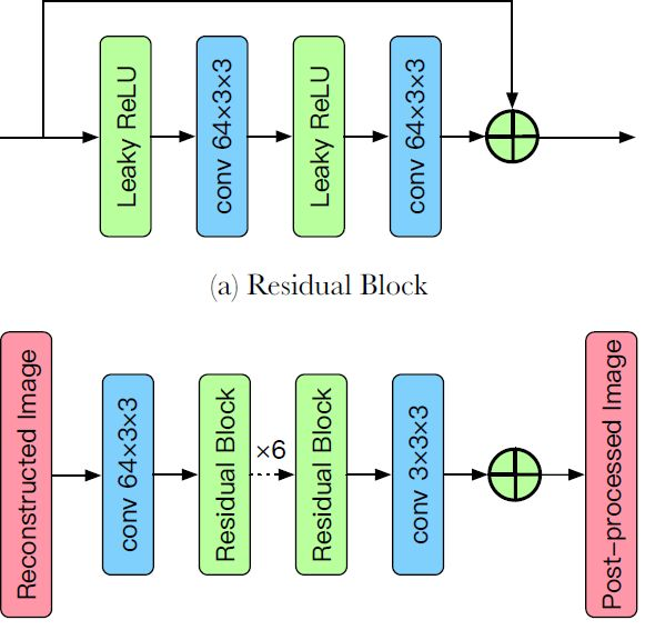 在方案TucodecPSNR中,我们使用了改进的H266算法作为基础,但低码率压缩算法重建图最显著的缺点是存在伪影,并且很多纹理细节会丢失。为了改进在低码率条件下重建图的质量,我们设计一个有效的后处理模块,后处理模块的具体细节如图3所示。