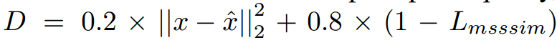 我们从CLIC 2019训练集和flickr.com 上收集了5000张高清图片,并从中采集了百万张的图像块作为训练集。为对网络进行高效训练,我们使用tensorflow平台对相应网络结构进行实现。在方案TucodecSSIM中,进行网络训练使用的损失函数如下所示: