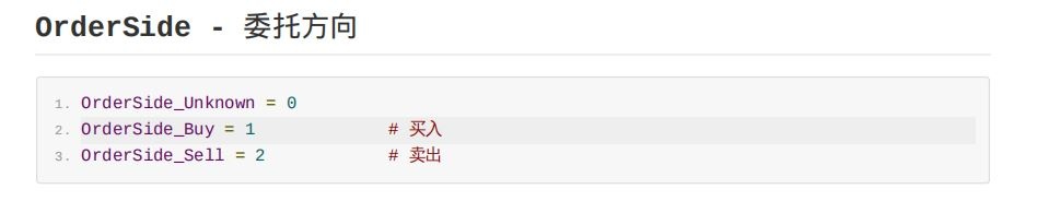 side = OrderSide_Buy 为买入方向;
