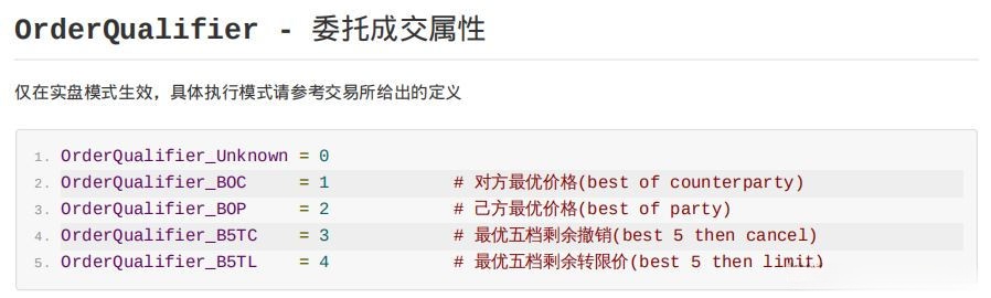 订单委托方向、订单委托类型和开平仓类型的枚举常量分别为:...