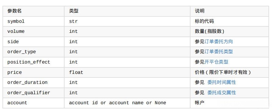 在algo()函数中,使用了order_volume()按指定量委比函数,函数原型如下: