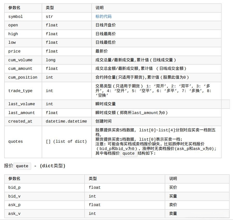 tick对象数据简介:
