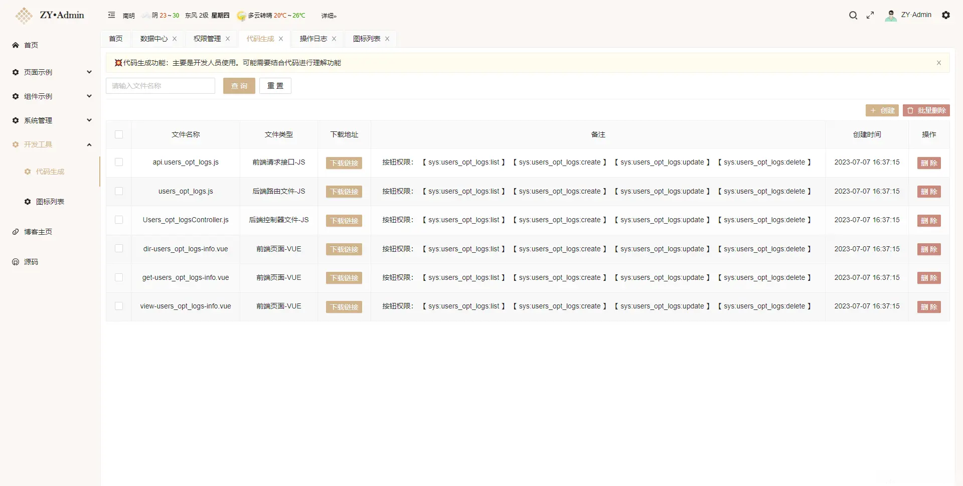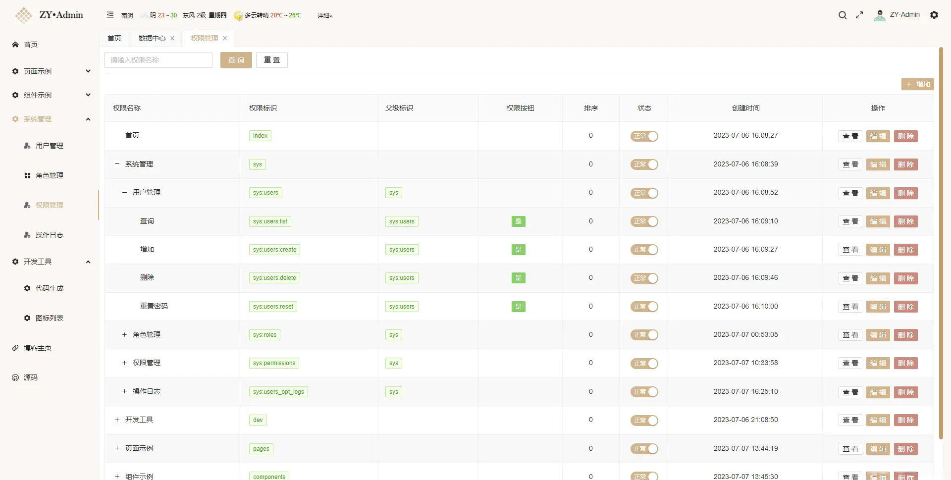 - 权限管理:内置全面且完善的路由权限和按钮权限生成机制确保安全管控功能高效实现