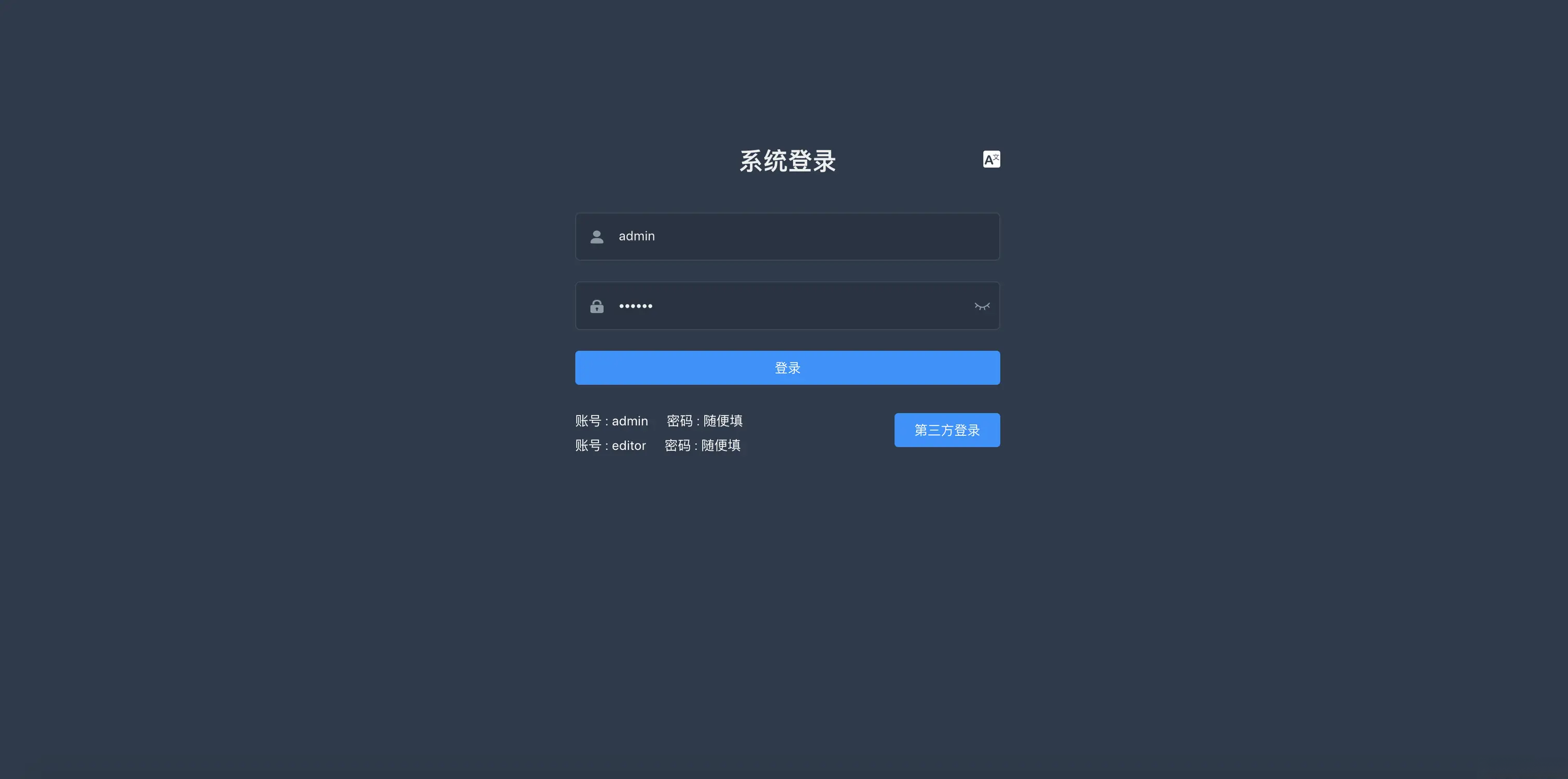 Vue-Element-Admin是一款集后端与前端于一体的解决方案。其开发基础是Vue框架和Element UI组件。采用前沿的前端技术和架构设计, 该工具能够显著缩短开发周期并提升应用效率。内置国际化的多语言支持系统, 整合了一系列典型的企业应用场景, 提供了多种功能组件集合, 包括动态路由配置、权限控制机制以及完整的业务模型提炼能力, 它可以帮助您快速搭建企业级中后台产品原型, 并在此基础上提供灵活的功能扩展接口以满足多样化需求