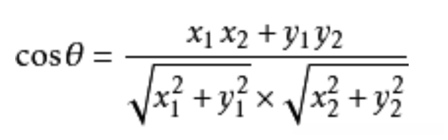 余弦相似度又称为余弦相似性,是通过计算两个向量夹角的余弦值来评估他们的相似度,在我们熟悉的二维空间中,余弦相似度的计算方法如下: