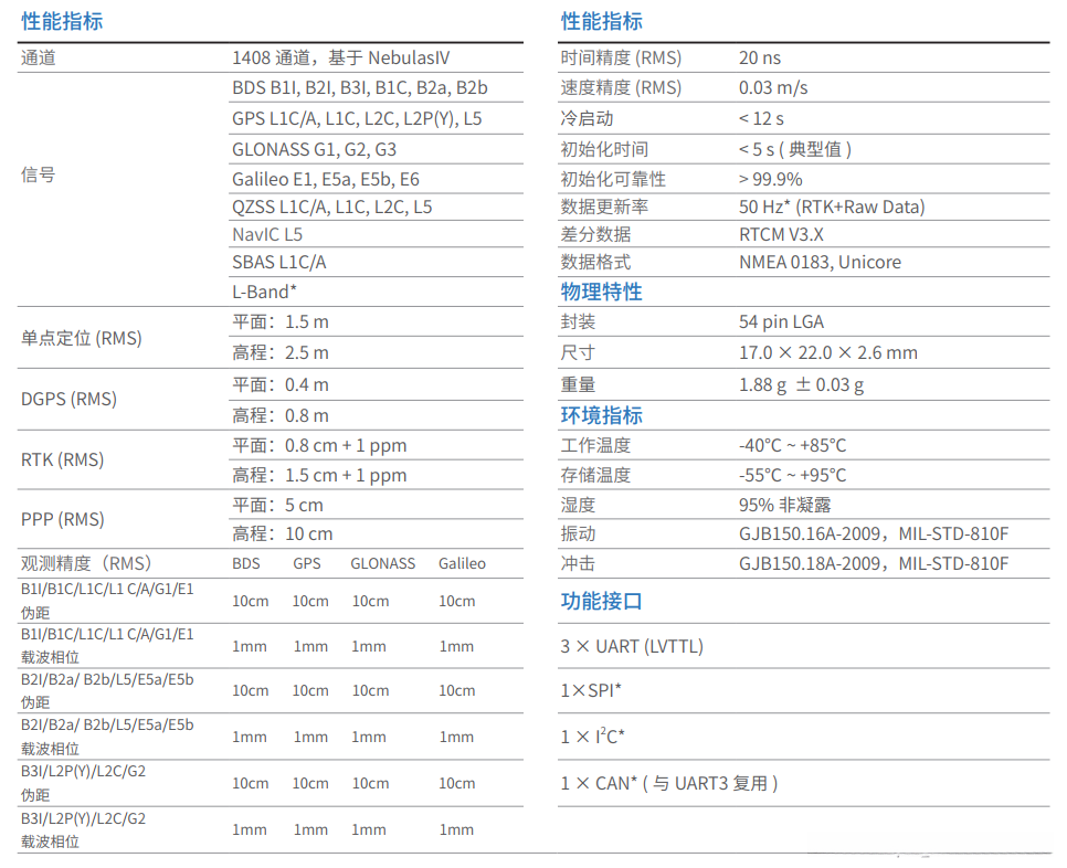 注:如遇产品升级更新,产品参数可能随之发生变化,最新产品参数请以和芯星通官网为准。
