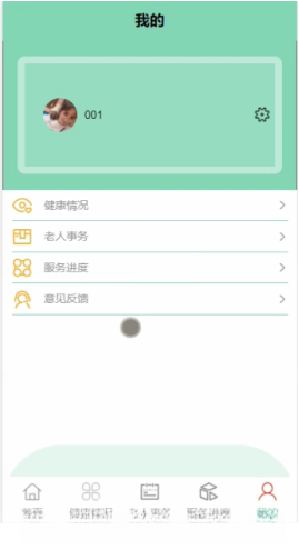 老人们,在我的平台可以对健康状况、老人事务、服务进度以及意见反馈等详细信息进行管理,请参考图5-4