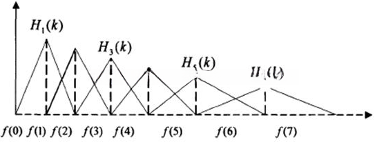 每个三角滤波器的频率响应为: