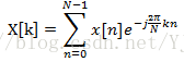 在得到加窗的每一帧信号后,需要知道此帧信号在不同频段的能量分布。从一个离散信号(采样信号)中提取离散频段频谱信息的工具就是离散傅里叶变换(DFT)。DFT的输入是一帧帧加窗后的信号x[n]…x[m],输出则是包含N个频带的复数X[k],表示原始信号中某一频率成分的幅度和相位。DFT的定义如下: