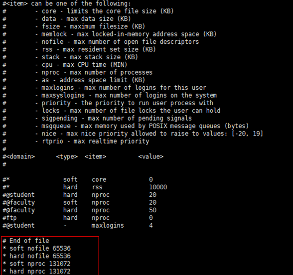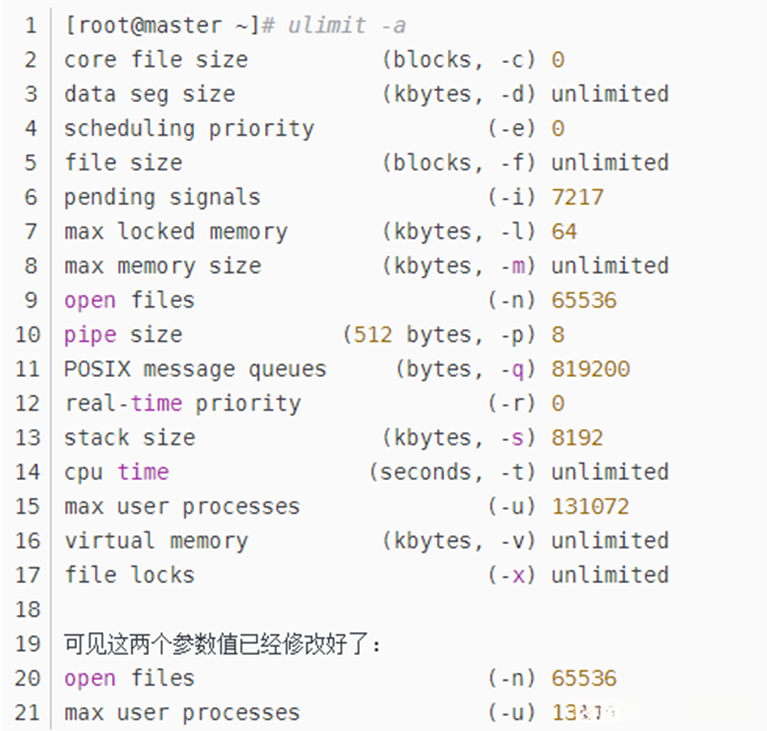 关闭当前shell窗口,重新打开输入ulimit -a查看是否设置成功