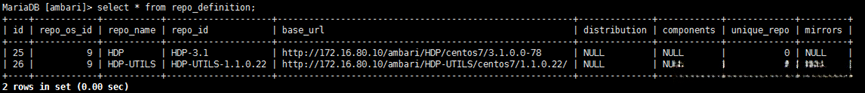 update repo_definition set base_url="http://172.16.80.10/ambari/HDP/centos7/3.1.0.0-78" where id=25 ;