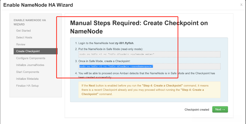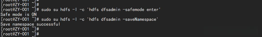 sudo su hdfs -l -c 'hdfs dfsadmin -saveNamespace'