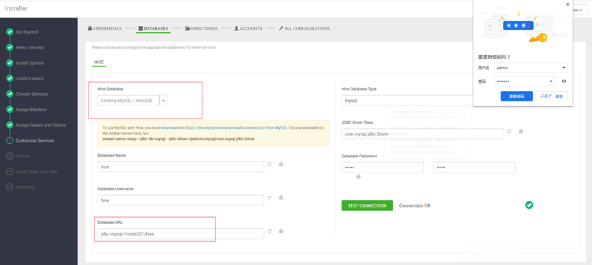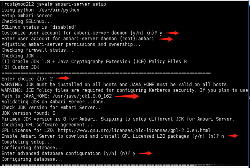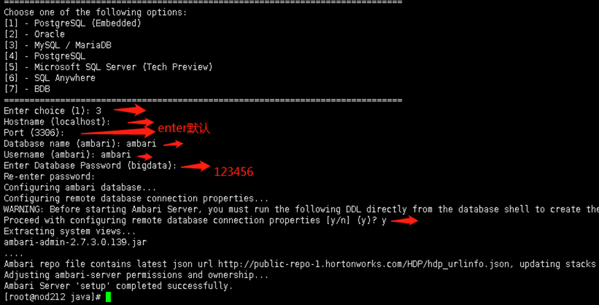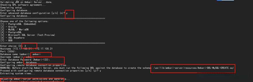 配置Hadoop组件Ambari服务器,并指定 JDBC 数据库为 MySQL 以及 JDBC 驱动程序路径为 /usr/share/java/mysql-connector-java.jar