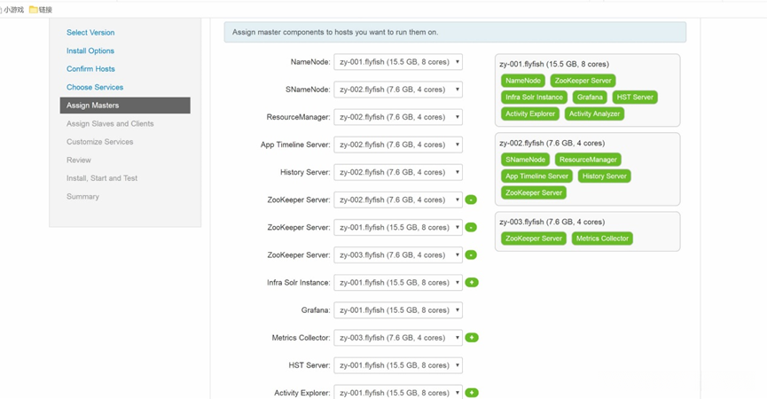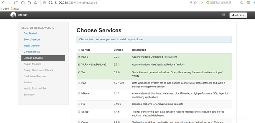 建议依照先前的步骤增添其他组件,包括hive, oozie, pig, sqoop, hbase, spark和zeppelin