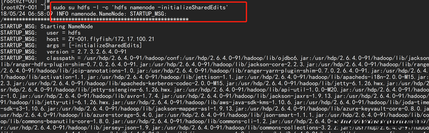 sudo su hdfs -l -c 'hdfsnamenode -initializeSharedEdits'