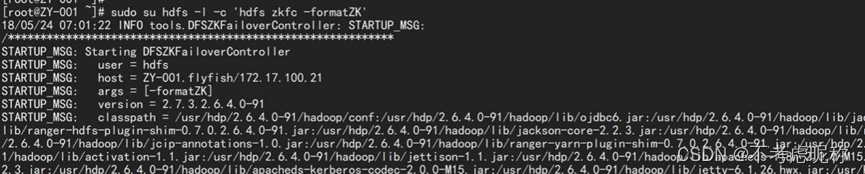 sudosuhdfs -l -c 'hdfszkfc -formatZK'