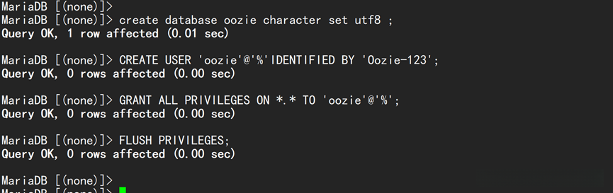GRANT ALL PRIVILEGES ON . TO 'oozie'@'%';
