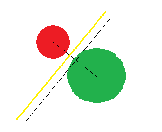 看起来与模式识别领域似乎没有直接关联的实际案例却都涉及到了相对论这一概念。回到问题本身,在所有类别出现概率相等的情况下欧式距离可被视为一个基准值它表征的是不同类别之间的平均区分度。此时分类器的决策边界位于两个类别均值之间的中点位置如图1所示而当各类别先验概率不均衡时显然仅以中垂线作为分类边界是不够合理的将会导致误判情况(如将绿色类样本误判为红色类)假设图1中的绿色类别先验概率增大则新的分类边界会向左侧移动至图2所示的黄线位置具体平移程度需通过马氏距离这一指标来确定在马氏距离计算过程中引入了协方差参数这一参数表征了数据分布的空间密度情况从而能够更好地适应不同数据集的空间特性