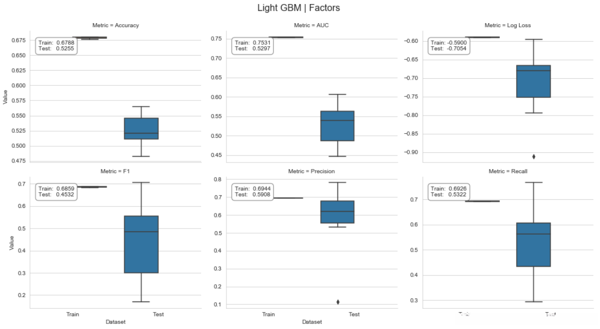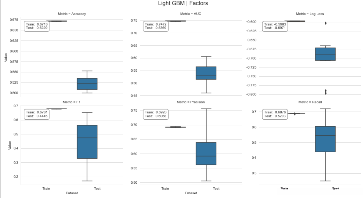 plot_result(lgb_factor_result, model='Light GBM | Factors')