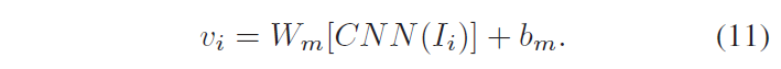 其中CNN网络通过编码边界框内的每个区域来生成区域特征;其中Wm,bmW_m,b_m是用于将特征映射到公共空间的完全连接层参数;这些区域特征共同构建了图像的空间表示;具体表示为向量形式:[v₁,v₂,…,vₙ]