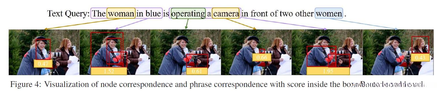 图4:在框中显示具有分数的节点对应关系和短语对应关系。 彩色效果最佳。