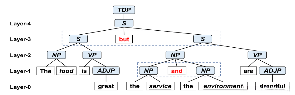 对于构造树的每一层,此操作将考虑相同短语中的单词和依赖树中的邻居。
