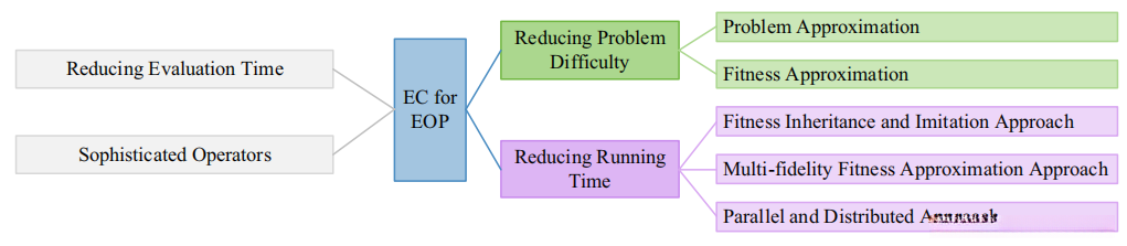 减少运行时间 :由于EOP问题的计算量较大,因此有必要减少EC算法的运行时间,使其能够应用于实际的EOP问题。一般来说,减少昂贵适应度评估的运行时间有三种方法: