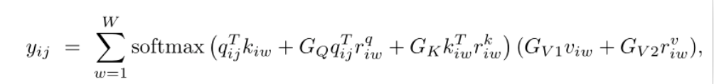 GQ、GK、GV1、GV2 是可学习的参数,它们共同创建门控机制,以分配不同权重的方式,控制位置偏差对编码的影响.如果准确地学习了相对位置编码,则与未准确学习的编码相比,门控机制将为其分配较高的权重。