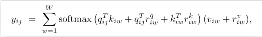 为了克服亲和度计算的复杂性,将自我注意分解为两个自我注意模块,具有更好的运算效率,上图示例沿宽度注意并加上位置偏差项.但是在小规模数据集上,位置偏差可能很难学习准确,导致性能降低.
