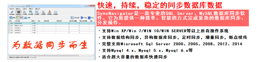 SyncNavigator 是一款性能卓越的数据库同步解决方案,在SQL Server及MySQL等主流关系型数据库平台中得到广泛应用。该软件提供智能自动化数据同步功能(全自动化模式或定时任务),无需人工干预,并能在发生故障时自动切换至可用模式。支持同构与异构数据库间的高效同步过程,并采用断点续传和增量式数据更新策略以确保稳定性与效率。SyncNavigator 适用于Windows XP及以上版本的操作系统环境,并特别适合处理大规模数据库间的快速高效同步操作。