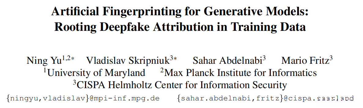 Artificial Fingerprinting for Generative Models: Rooting Deepfake Attribution in Training Data(主动防御)