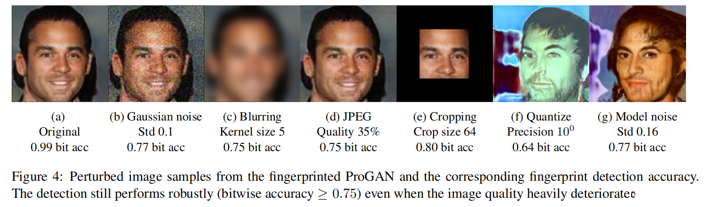 本文研究表明,在生成模型中的人工指纹不仅能够从训练数据中提取出来,并且经过深度伪造过程后转化为全部生成的deepfakes。仅限于那些依靠深度学习算法实现的人工指纹识别技术才有可能成功地转移至生成模型;而传统的隐写与水印技术则无法实现这一过程。