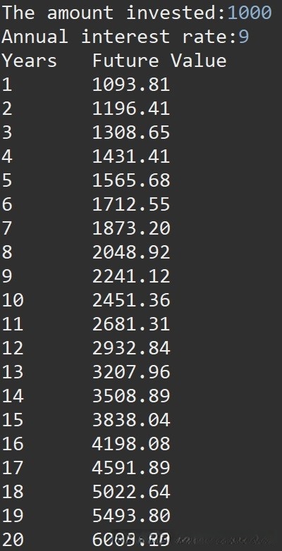 第六章第七题(金融应用:计算未来投资回报值)(Financial application: compute the future investment value)