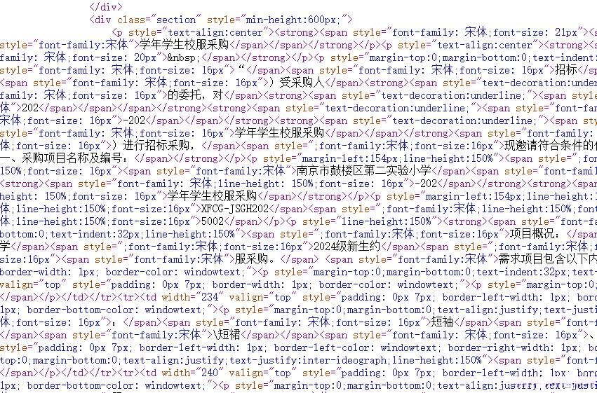 那么利用正则表达式很难再清理掉这些代码。先不管这些,我们这节课还是用上一次学到的方法爬取某学校的校务公开内容。