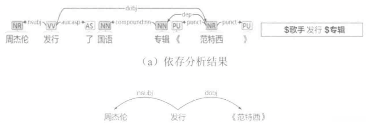 基于文本中所蕴含的语法结构(包括词法和句法等方面)来定义抽取模式的方法将有助于提升其表达能力。这种方法不仅能够明确指定匹配的具体文本实例,并且还能够进一步规范或限定抽取规则以提高其准确性与完整性。如‘NP 著有 (NP、)*’这类结构则可被用于提取‘作品-作者’相关的信息作为具体应用案例进行探讨分析。