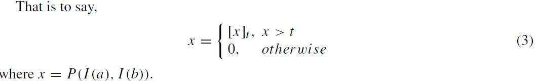 由于仅当两张图像同时具有语义i时,图像之间的相关性才发生,因此相关性矩阵是一个对角阵(the correlation matrix is a diagonal matrix)。更重要的是,语义概率是很小的。因此设置阈值t后,大部分的概率倾向于0.因此,相关矩阵是一个稀疏矩阵,因此通过probability-based semantic-level similarity就可以过滤到一些不相干的图像。