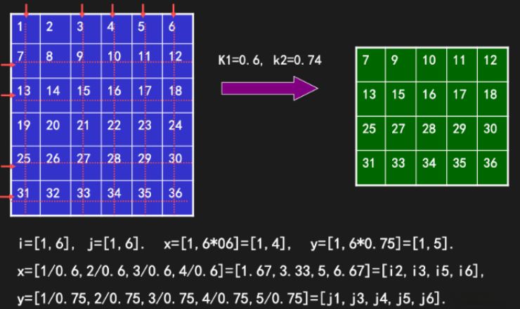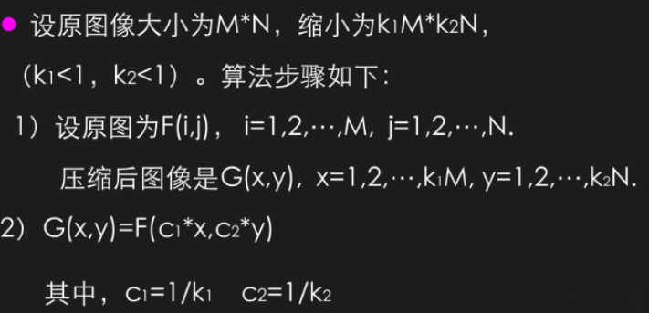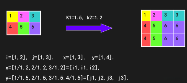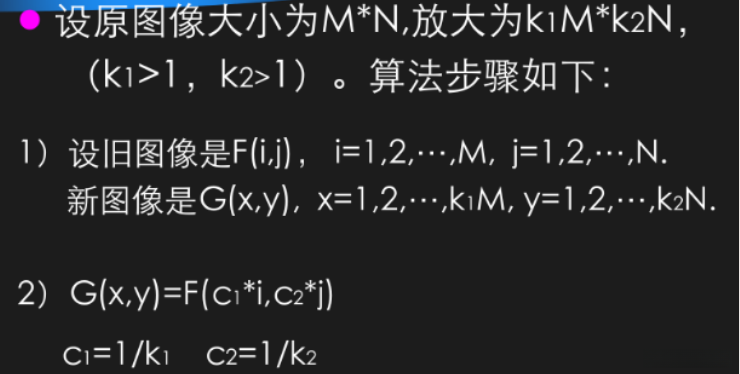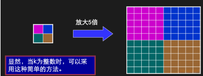 该方法是将原图像放大K倍,则将原图像中的每个像素值填入对应于k×k的子块中。