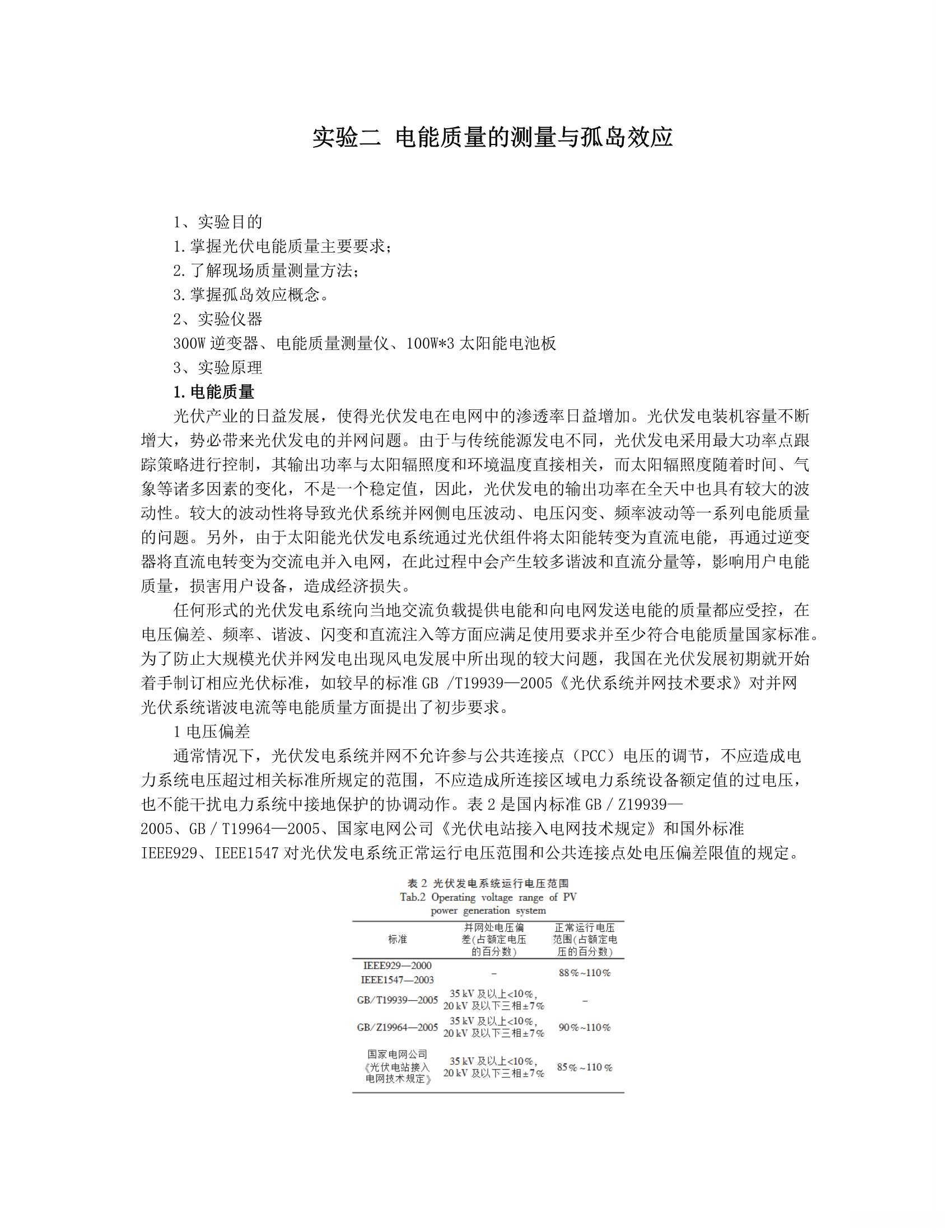 光伏与光电子实验实验二电能质量的测量与孤岛效应