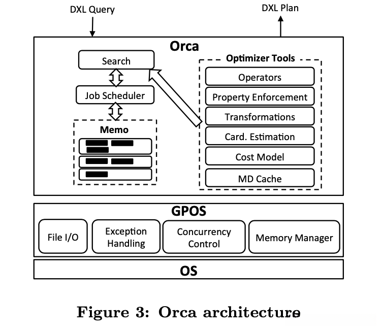 本文中, 我们系统地介绍了Orca, 它是基于Greenplum/Pivotal平台的研究与开发成果之一。Orca作为最先进的一类查询优化器, 是专为满足高需求的数据分析任务而设计的。它与现有优化器相比, 在多个关键方面存在显著差异:主要体现在以下几个方面: