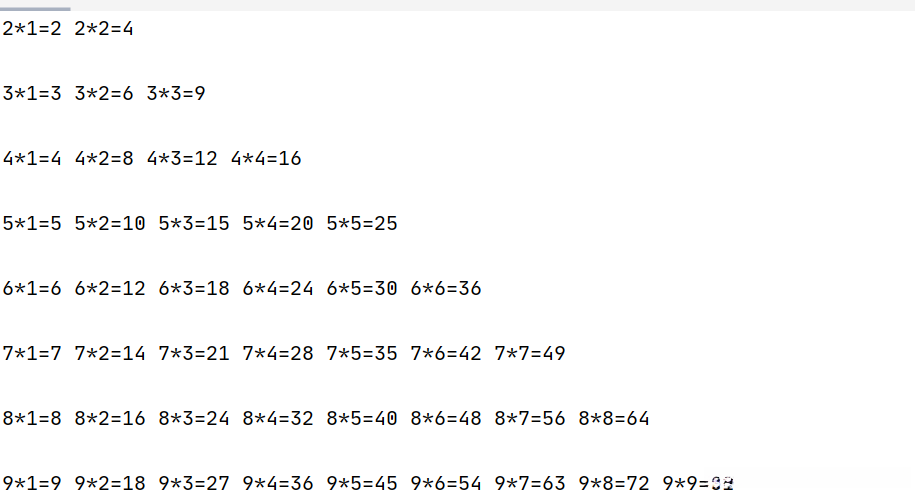 print("{}*{}={}".format(i,j,i*j),end=" ")
