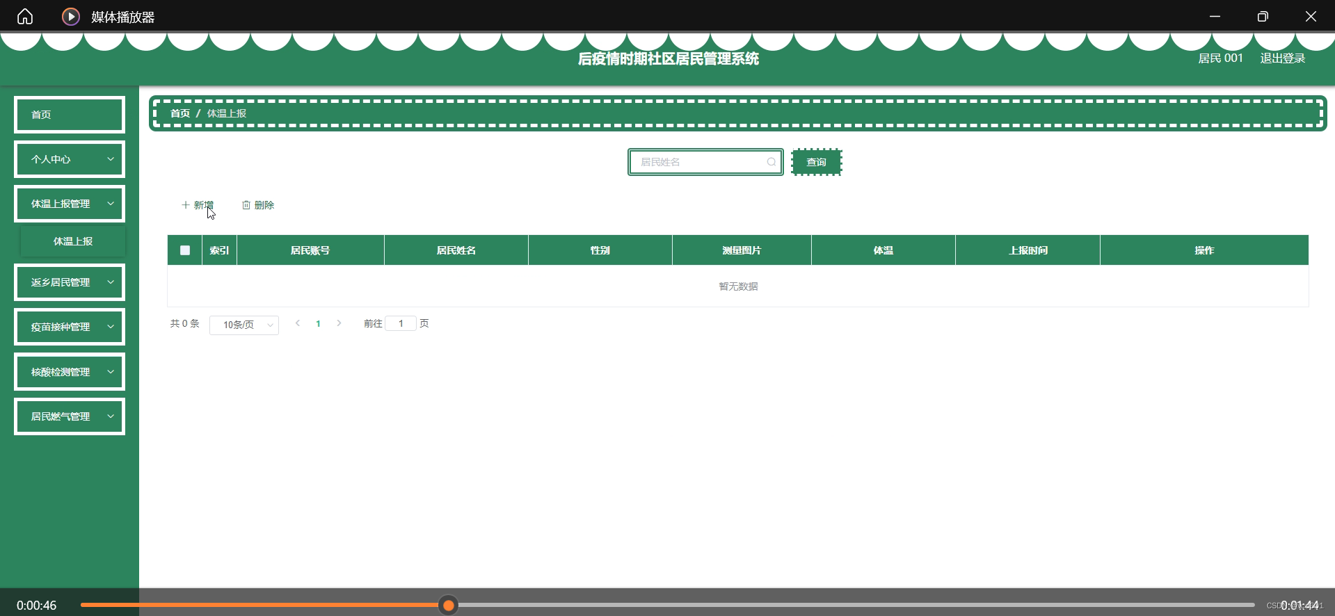 后疫情期间建立社区居民管理系统对于提升防疫能力至关重要。借助该系统动态采集并深入分析居民健康数据能够及时识别潜在风险并助力制定精准防控策略。此外在发生突发情况时能够提前发出警报从而指导居民采取必要的防护措施有效降低传播风险
