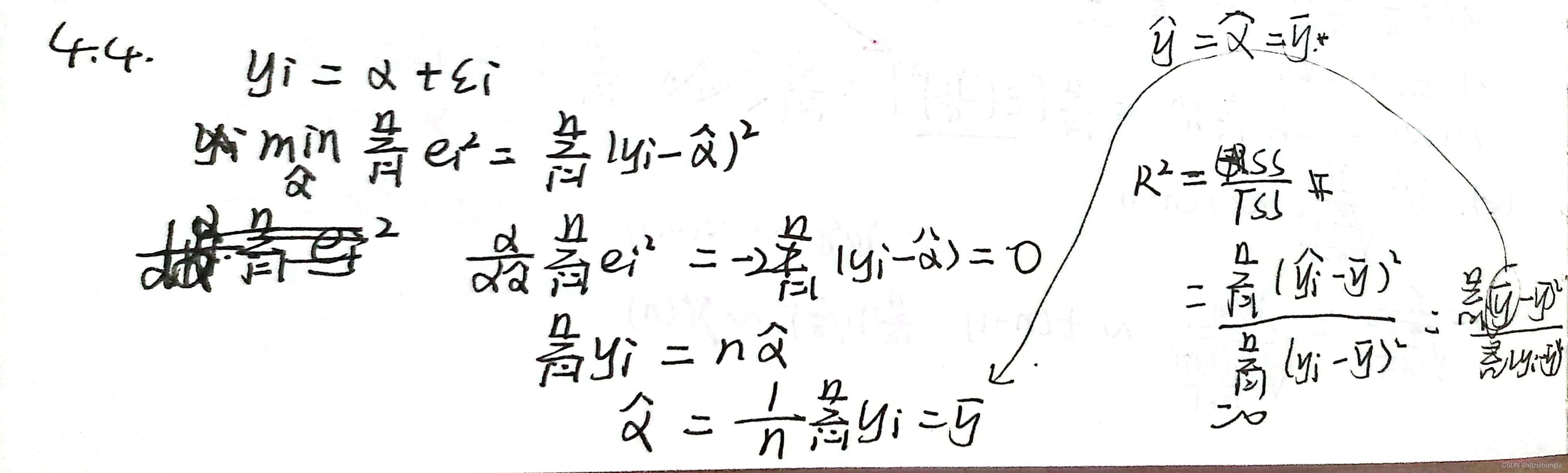 - 在仅含常数项的回归模型 Yi = \alpha + ei 中:
