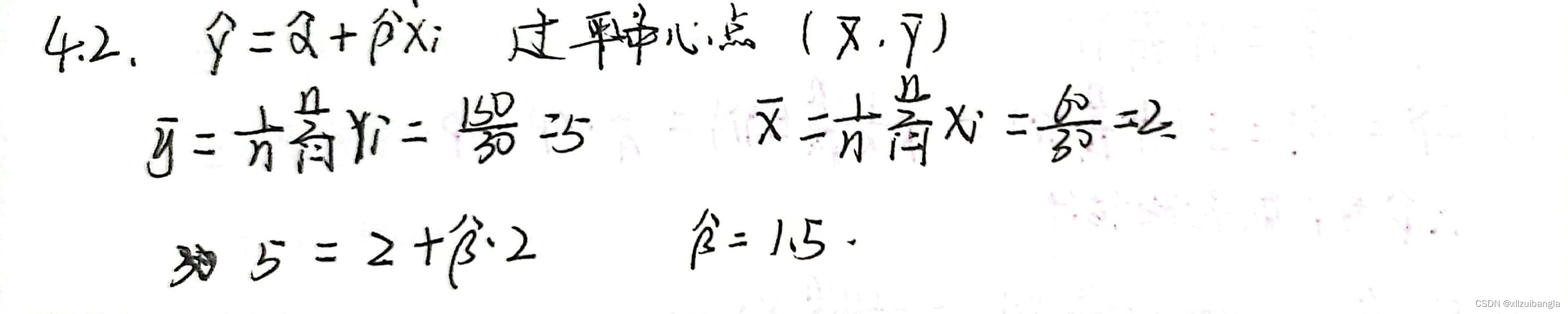 - 截距项 \alpha = 2 ,通过公式推导得出斜率 \( \beta = (Y{\text{总}} - n\alpha)/(X{\text{总}} - n\bar{X}) = (150 - 302)/(60 - 302) = (150 - 60)/(60 - 60) = 不定义(需重新计算)。