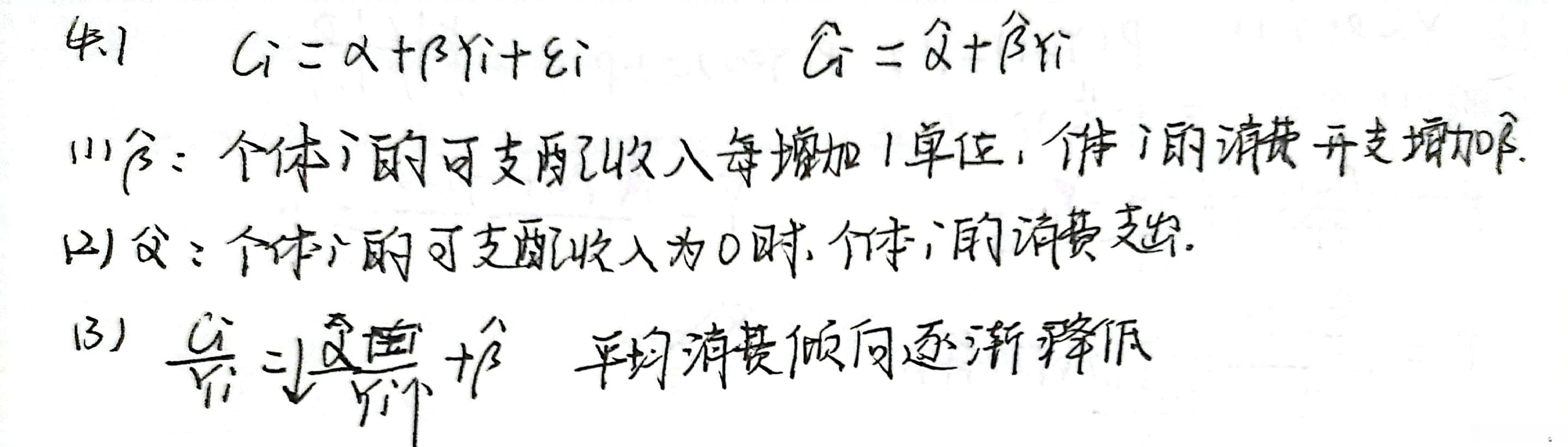 - 在消费函数 Ci = \alpha + \beta Yi + s_i 中: