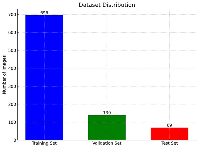图片数量: 总计:904 张。训练集 696 张, 验证集 139 张, 测试集 69 张